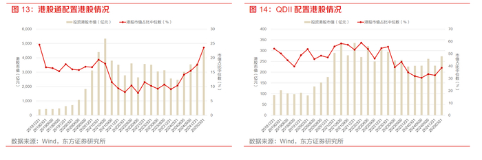 从配置渠道看,港股通资金持续担当主力。数据显示,港股通渠道持仓中位数提升5.98个百分点至23.55%,对应市值增长972亿元至4603亿元。