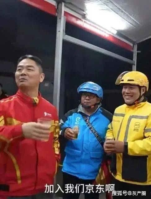席间,还有两个身穿美团和饿了么工服的骑手,走过来向刘强东敬酒。