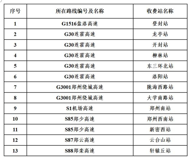 五一河南高速免费,易堵路段、收费站、服务区公布