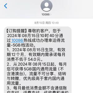 2024年8月承诺套餐截图。受访者提供