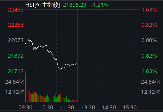 港股方面,恒指报21805.29点,跌1.21%,恒生科技指数报4946.56点,跌2.04%,农业产品、药品及生物科技、医疗保健设备和服务板块领涨,专业零售、消费者主要零售商、半导体板块领跌。