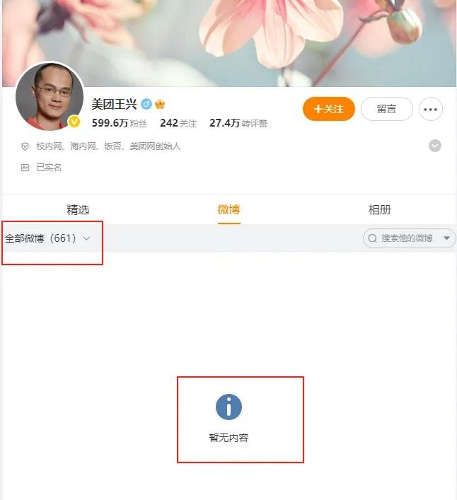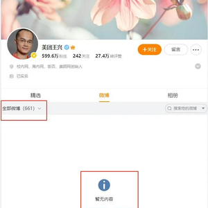 4月24日,有网友曝出美团王兴清空了所有微博。目前,并未有官方回应。