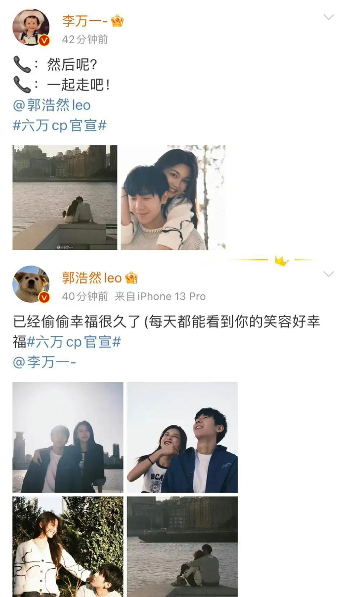 “六万CP”郭浩然和李宛倩也在2022年10月26日官宣了恋情。