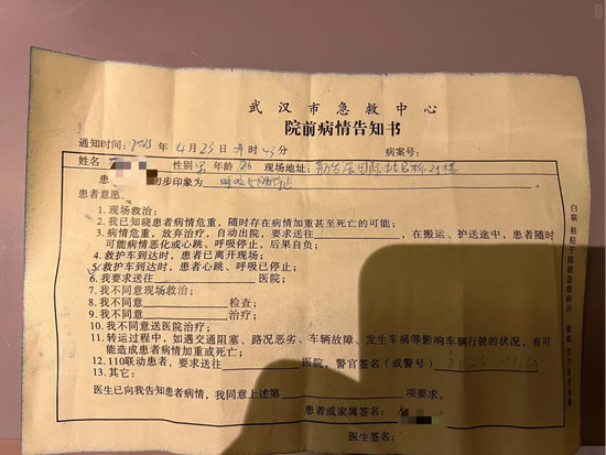 不仅如此,该博主还贴出了急救中心院前病情告知书。