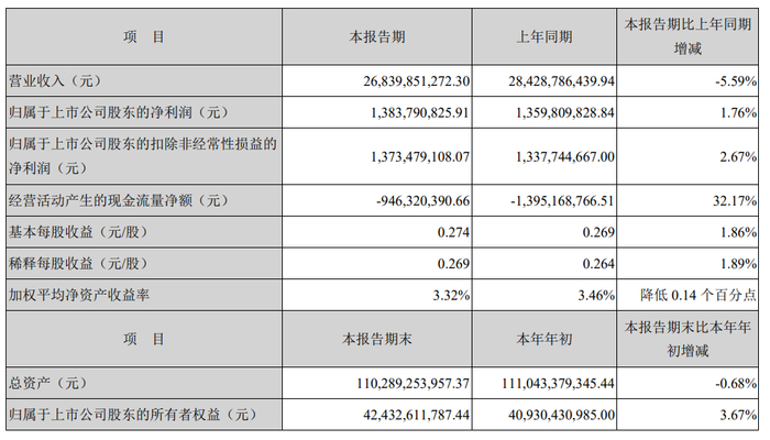 中信特钢在2025年一季度实现了营业收入268.40亿元,同比下降5.59%;归属于上市公司股东的净利润为13.84亿元,同比增长1.76%。
