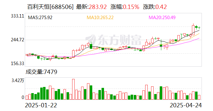 太平洋04月24日发布研报称,给予百利天恒(688506.SH,最新价:283.76元)买入评级。评级理由主要包括:1)B01D1海外首个注册临床顺利启动,国内有望2025年底申报上市;2)2025年重点关注B01D1海外1期临床的数据读出,以及第二项海外3期临床的启动。风险提示:研发或销售不及预期风险,行业政策风险。