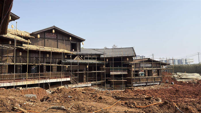 湖北日报讯(记者严芳婷)清晨的江夏区锦绣村,村支部书记刘兵站在正在兴建的美食小镇施工地,兴奋地拍着逐渐成型的民房。这片曾撂荒多年的岗地,即将变身国风美食老码头,于五一假期向游客开放。