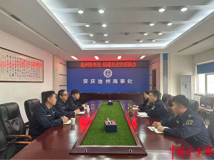 紧接着,4月17日,长江池州航道处一行3人前往池州海事处。在此次走访交流中,双方聚焦低水位时期的航道安全畅通问题深入探讨。