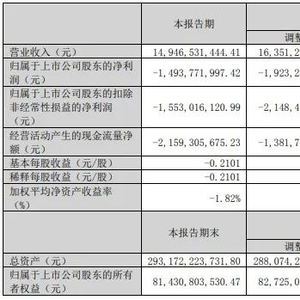 4月23日晚间,天山股份发布2025年第一季度报告显示,公司2025年第一季度实现营业收入149.47亿元,同比下降8.64%;归属于上市公司股东的净利润亏损14.94亿元,而上年同期为净亏损19.23亿元,同比增长22.33%,亏损同比大幅收窄。