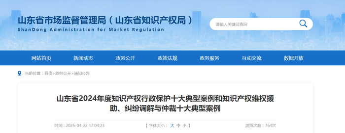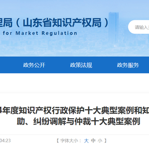 山东省2024年度知识产权行政保护十大典型案例和知识产权维权援助、纠纷调解与仲裁十大典型案例