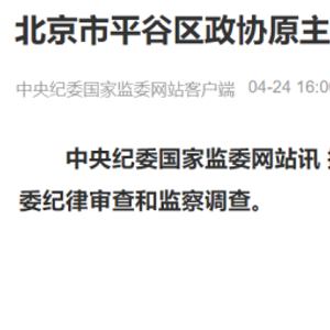 4月24日,中央纪委国家监委网站讯,据北京市纪委监委消息:北京市平谷区政协原主席王春辉涉嫌严重违纪违法,目前正接受北京市纪委监委纪律审查和监察调查。