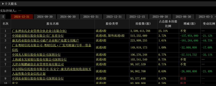 2024年四季度,康美药业的前十大股东里,多家股东大比例减持。