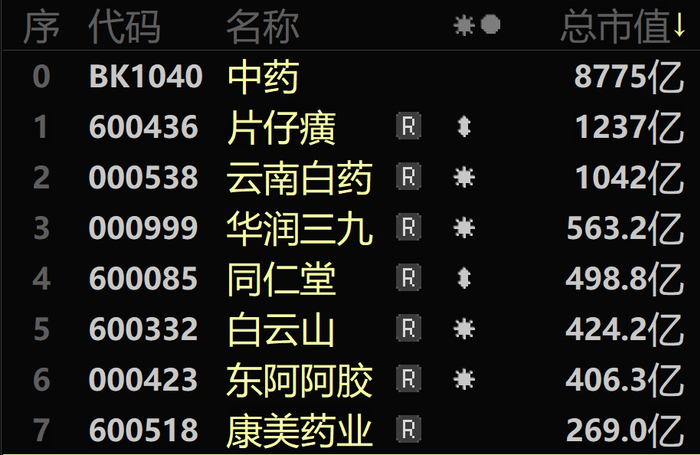 中药板块市值第5名的白云山,是广药集团控股的最核心资产,目前市值424亿元。