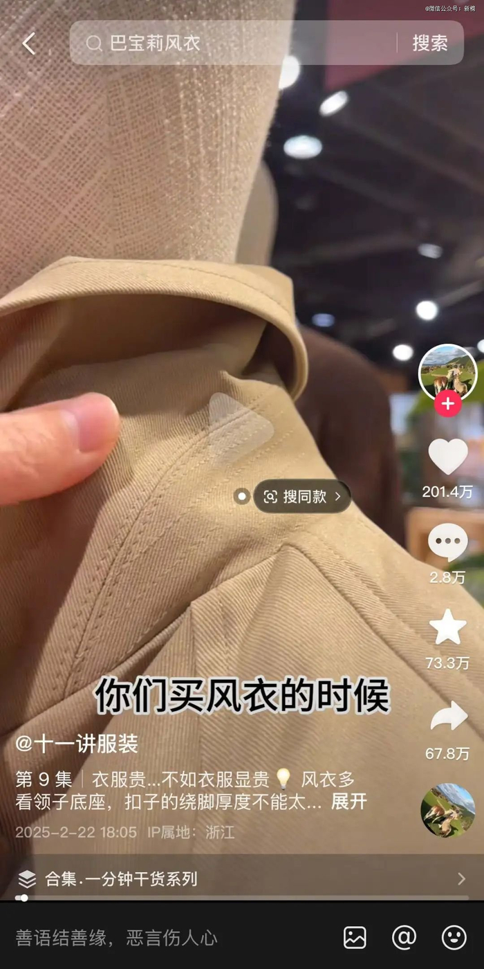 短短一分钟的视频,就让网友们学习到了不少挑选衣服的干货。这条视频在抖音的点赞量达到了201万,收藏量73.3万,在小红书也获赞38万。有网友评论“好伟大的赛道,之前买衣服都没注意过这些,踩了好多坑”。