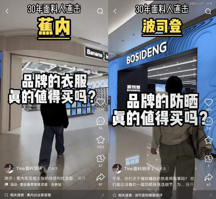 此外,“Tina面料测评”的账号中,还有一个“云逛街”系列,专门去逛优衣库、ZARA等快时尚店,挑选值得买、性价比高的服装单品。