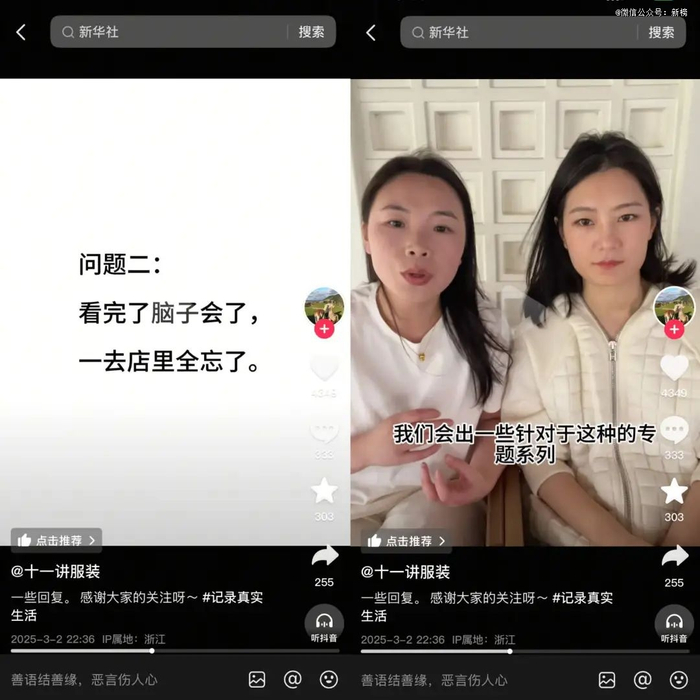在“十一讲服装”抖音视频的评论区中,就有网友提出“看完脑子会了,一去店里全忘了”,博主给出的回复是,之后会考虑做更多专题视频,帮助大家巩固知识点,不只是逛到哪里讲哪里。