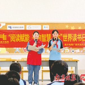 书香四月天,阅读正当时。连日来,南方电网广西电网公司各级青年志愿服务队和团员青年走进南网知行书屋、各中小学开展世界读书日和“南网蓝公益”志愿服务活动,引导学生们养成爱读书、享阅读的风尚。据悉,南方电网广西电网公司已在广西建成了110间南网知行书屋,配置优质图书近49万册,直接受益学生超10万人。