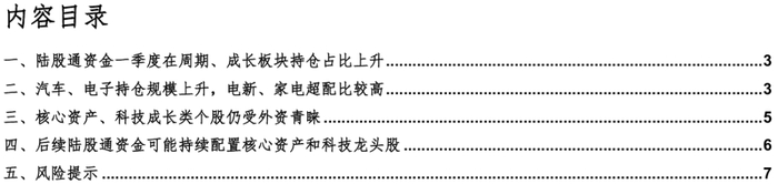 一、陆股通资金一季度在周期、成长板块持仓占比上升