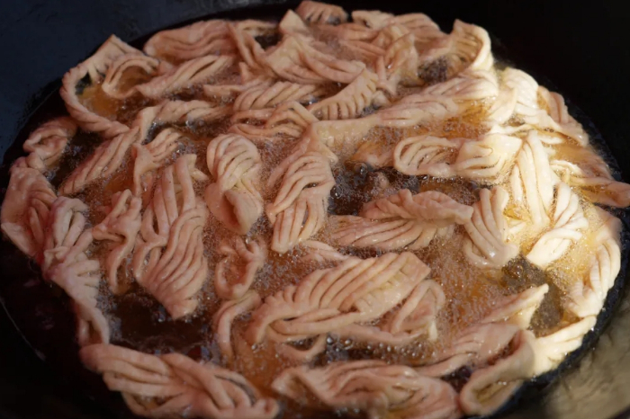 “第一届美食节我们就在这儿摆摊卖炸果子了,果子都是纯手工制作的,每天现做现卖,生意好的时候一天能卖个一千多块钱。”来自大堡镇老庄村的摊主黄凤兰笑着说道。