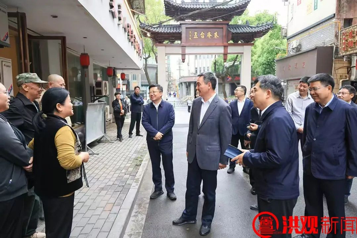 万寿宫历史文化街区旅游资源丰富,为持续提升街区周边区域品质,我市拟在街区周边设立牌楼,通过醒目标识,吸引游客拍照打卡、驻足赏景,强化对人流的集聚导引。李红军实地踏勘牌楼选址点位,听取有关工作汇报。他强调,要精心做好牌楼选址、规划设计等工作,统筹建筑风格,确保牌楼形象与街区赣派建筑协调统一、相得益彰,进一步彰显历史文化街区品牌,着力刻画好南昌城市印象。要切实加强街区管理,不断丰富业态种类,推动街区业态提质升级,用心用情解决好街区商户关心的问题,持续浓厚商业氛围,让街区人气商气更加旺盛。要精心筹办好“五一”假期文旅活动,进一步点燃城市激情、释放消费活力,提升游客体验感,扩大城市影响力。