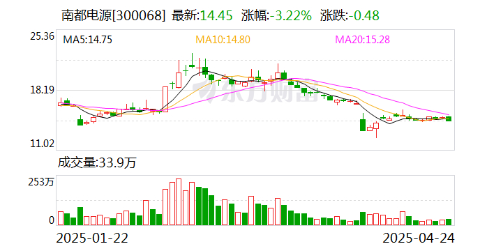 不过,业绩方面,去年南都电源刚转盈为亏。据其业绩预告,2024年预计实现归母净利润亏损12.00亿元~15.60亿元;扣非净利润为亏损14.00亿元~17.60亿元。