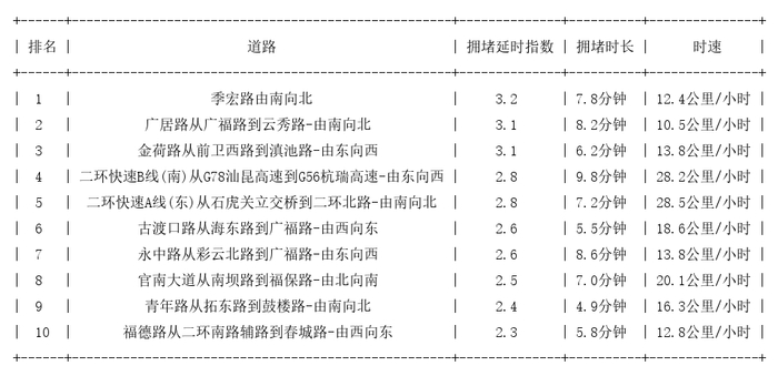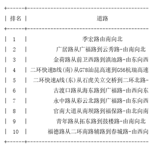 昆明道路拥堵排行榜top10: