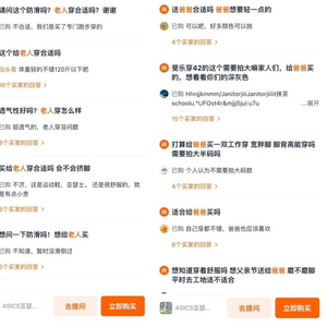 在天猫asics官方旗舰店,亚瑟士销量第一的contend 4跑鞋提问区,“送爸爸” “老人穿合适吗”相关问题多集中于2023年及以前。