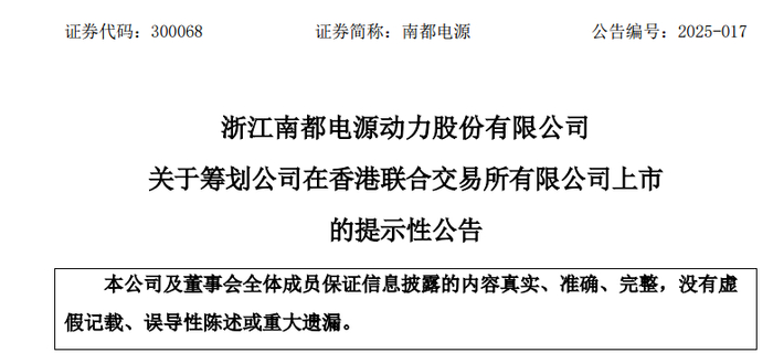 2025年4月23日,A股储能龙头南都电源的一纸公告搅动资本市场——公司宣布筹划H股上市,拟登陆香港联交所。