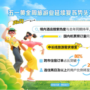近日,携程发布的《五一旅游出行预测报告》显示,在“请4休11”拼假策略带动下,跨市住宿订单占比已突破80%,县域市场高星酒店消费反超高线城市,入境游订单同比激增173%,全民开启“假日经济新玩法”。
