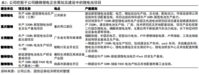 锂电池回收业务:公司目前已在江西新余、赣州、四川达州等地建成多处拆解及再生基地,退役锂离子电池及金属废料综合回收处理能力达到20万吨,其中锂综合回收率在90%以上,镍钴金属回收率在95%以上,成为中国磷酸铁锂电池及废料回收能力最大,电池综合处理能力行业前三的电池回收行业头部企业之一。公司通过扩充锂电池回收业务产能及在回收及再利用退役电池方面的专长继续向下游拓展业务,年产2万吨碳酸锂及年产8万吨磷酸铁项目已落地。长期来看,未来公司锂电池回收提锂产能占公司的总提锂产能比例将达到30%。