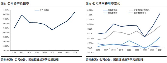 财务数据方面:①截止至2024年末,公司资产负债率为52.80%,相比于2023年末上升9.86个百分点;在手货币资金约59.44亿元,同比-37.31%;在手存货约86.13亿元,同比+4.23%;②期间费用方面,2024年销售费用约1.47亿元,同比+31.59%;管理费用约8.71亿元,同比-11.30%;研发费用约9.11元,同比-27.20%;财务费用约8.74亿元,同比+50.22%;③利润分配方面,公司拟向全体股东每10股派发现金红利1.5元(含税),总计派发现金分红总额约3.03亿元。