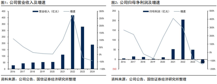 公司发布2024年年报:实现营收189.06亿元,同比-42.66%;实现归母净利-20.74亿元,同比-141.93%;实现扣非净利-8.87亿元,同比-133.16%;实现经营活动产生的现金流量净额51.61亿元,同比+3423.52%。公司净利润大幅转亏,一方面是因为锂盐价格明显下降,另一方面是来自于公司所持Pilbara股价下跌所造成公允价值变动损失,公司2024年公允价值变动损失约14.89亿元,此外公司2024年末还计提各项资产减值损失约4.79亿元。