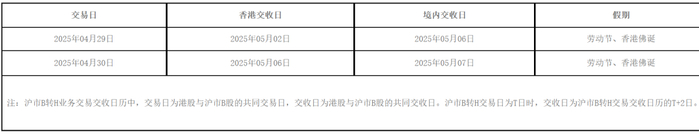 九、2025年劳动节期间H股“全流通”业务交收安排: