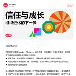 全员信还发布另外两项变化,小红书员工在离职时期权可申请回购;取消隔周周六工作的安排。这两项变化也将于5月1日起生效。小红书产品的特质是“人matters”,公司也相信一起前行的伙伴是自驱且优秀的。面向未来的挑战,公司尊重员工“选择在哪里工作的自由”“与广大的小红书人分享公司成长的价值”,并“鼓励大家找到最能发挥自己创造力的工作方式与节奏”。