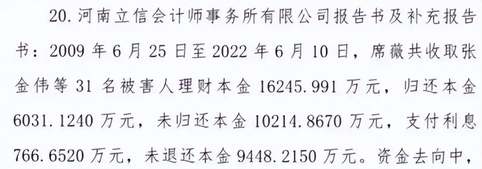 截至案发,席某已经归还投资人本金6031万元、支付利息767万元,但剩余9448万元还有待追偿。在这9000多万元中,仅有420万元用于购房购车,高达6100余万元用于网络直播打赏。