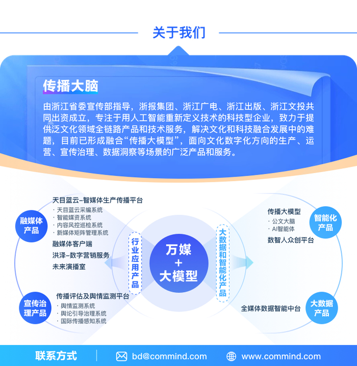 在发展潜力上,2024年10月,传播大脑获得浙江省产业基金1.4亿元投资。以此为契机,传播大脑在前沿技术领域持续加大投入,推动产品体系与业务模式的迭代升级,并逐步拓展省内外市场版图。从技术层面不断夯实创新的先发优势,到生态建设上稳步推进、持续深化合作广度与深度。