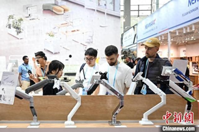 4月24日,第137届广交会的家具展区吸引境外采购商咨询。中新社记者 陈楚红 摄