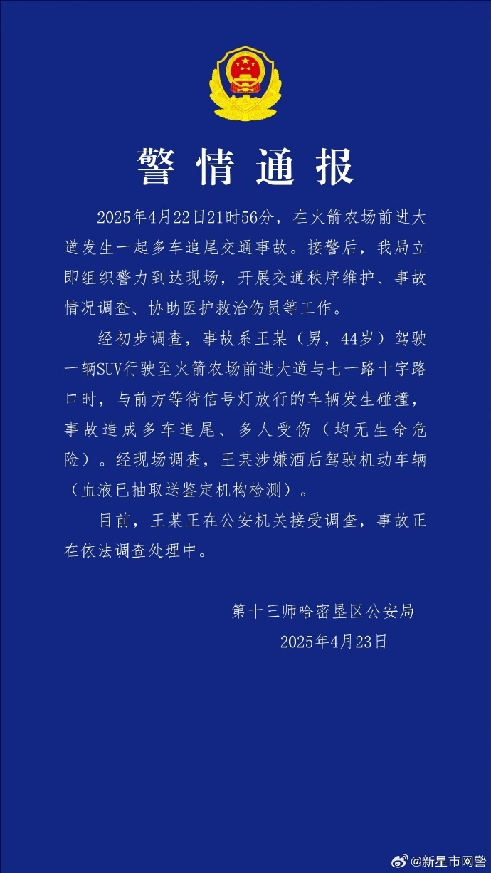男子酒驾致多车追尾多人受伤,新疆哈密警方通报