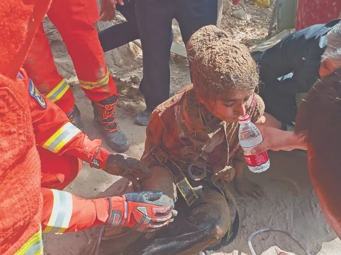 升井后的布帕太姆·阿布杜喀迪尔,也因缺氧瘫坐在地上,二人迅速被送往医院救治。