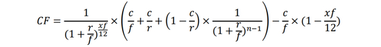 其中CF为转换因子,r为10年期国债期货合约票面利率3%,x为交割月到下一付息月的月份数,n为剩余付息次数,c为可交割国债的票面利率,f为可交割国债每年的付息次数。