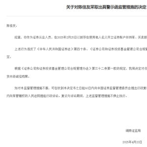 关于对陈佳友采取出具警示函监管措施的决定。