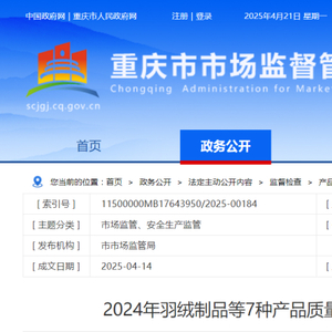 近日,重庆市市场监督管理局通报2024年羽绒制品、家用纸制品等7种产品质量市级监督抽查情况。其中,抽查高新区、两江新区、丰都县、巫山县、巫溪县等24个区县的100批次家用纸制品,发现9批次产品不合格。不合格项目涉及允许短缺量、内装量短缺量、节距偏差、纵向湿抗张强度。