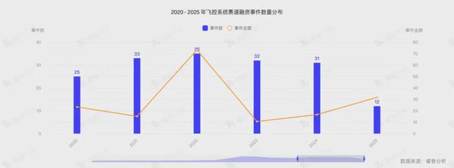 睿兽分析整理近年来相关公司的融资情况,飞控系统融资事件数从图中可以看出,2020年至2024年飞控系统赛道的融资事件数量整体较为平稳,2022年达到峰值35起,到2024年继续小幅下降至31起。整体来看,飞控系统赛道在五年间保持了较高的资本关注度和投资活跃度,未出现大幅波动,或说明该领域具有较强的持续吸引力与稳定性。