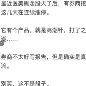 前几天一众医美概念股的拉爆始终让人摸不着头脑,因为医美这个行业其实这几年来日子过得也不太好。各种技术普及后,就是持续的在打价格战,利润越做越薄,怎么突突然然的发力了。直到昨天,圈里流传出了一则消息。