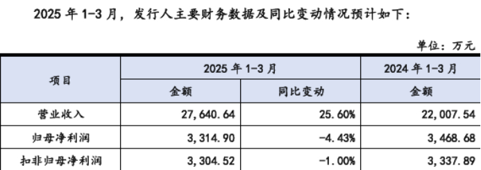 受江西同宇固定资产折旧摊销等制造费用大幅增加的影响,2025年1-3月营业成本预计为2.23亿元,同比增长38.49%;同时期间费用预计为1737.06万元,同比增长6.96%,综合影响导致2025年1-3月公司净利润预计为3314.90万元,同比下降4.43%;2025年1-3月扣除非经常性损益后归属于母公司所有者的净利润预计为3304.52万元,同比下降1.00%。