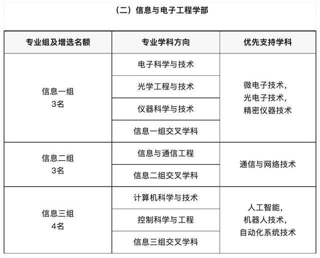 1. 信息Ⅰ(包括计算机科学与技术、微电子科学与技术、控制科学与工程、仪器仪表与传感等)5 名,其中集成电路芯片1名。
