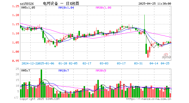 4月25日,截止午间收盘,电网设备ETF(159326)涨0.57%,报1.052元,成交额360.26万元。电网设备ETF(159326)重仓股方面,国电南瑞截止午盘跌0.61%,特变电工涨0.17%,思源电气涨0.28%,中天科技涨0.94%,亨通光电涨3.48%,宏发股份涨0.18%,正泰电器涨0.76%,三星医疗涨1.29%,东方电缆跌1.66%,特锐德涨0.86%。