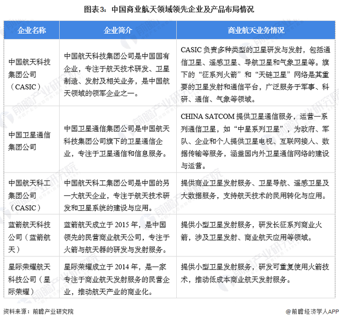 中国商业航天主要由国有航天巨头与民营企业共同推动。国有企业如中国航天科技集团(CASC)和中国航天科工集团(CASIC),凭借深厚的技术积累、丰富的项目经验和强大的资源整合能力,主导政府相关项目,如卫星发射与空间站建设,在商业航天领域发挥着“国家队”的中流砥柱作用。民营企业如星际荣耀、蓝箭航天等,则以创新和技术突破为利器,迅速崭露头角。它们专注于卫星发射、商业卫星通信等领域,凭借灵活的运营机制、敏锐的市场洞察力和勇于创新的精神,在细分市场中开辟出一片属于自己的天地。国有企业的稳健与民营企业的活力相互补充、相互促进,形成了良好的产业生态,共同推动我国商业航天产业不断向更高水平迈进。