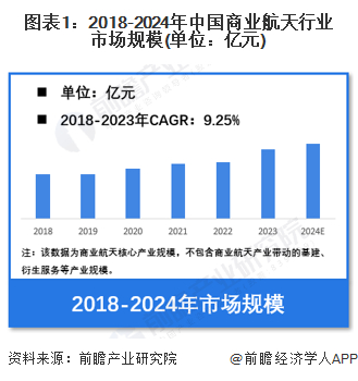 2023年中国商业航天核心产业规模超过2300亿元,五年行业复合增速为9.25%。