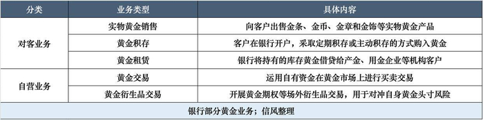 信风了解到,银行黄金业务可细分为对客、自营两大类: